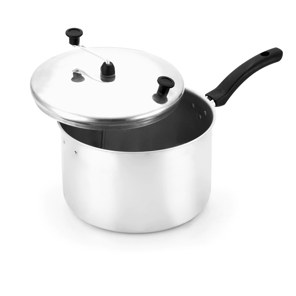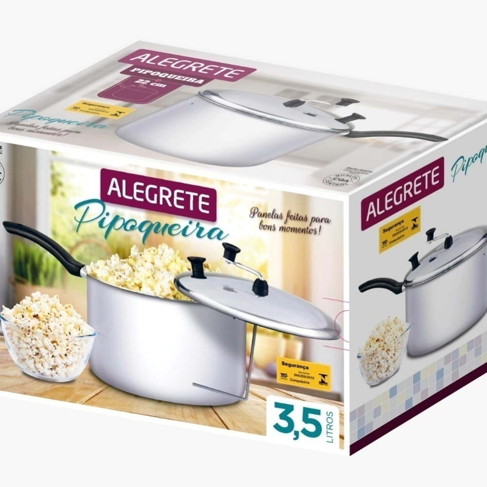 Fabricada em alumínio polido de alta qualidade, esta pipoqueira é durável e resistente, garantindo uma distribuição uniforme de calor para pipocas perfeitamente estouradas. Com capacidade de 3,5 litros, é ideal para preparar grandes porções de pipoca para compartilhar com amigos e familiares.
